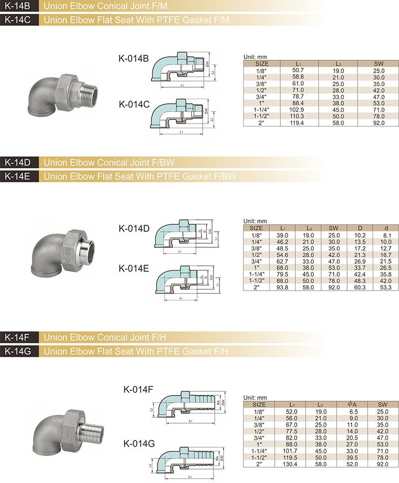 - K-014E Union Elbow Flat Seat With PTFE Gasket F/BW