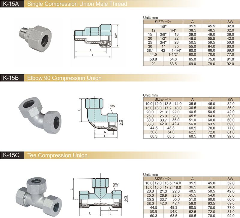 • K-15A Single Compression Union Male Thread