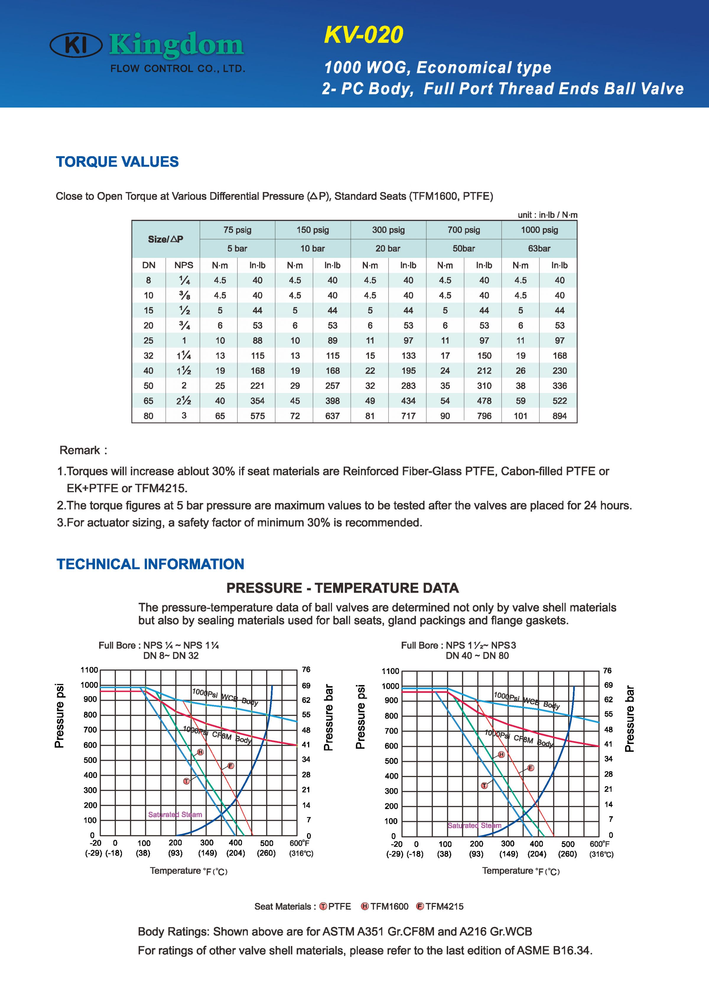 The KV-020 model is an economical type valve that features a full port design and is rated for 1000 WOG.