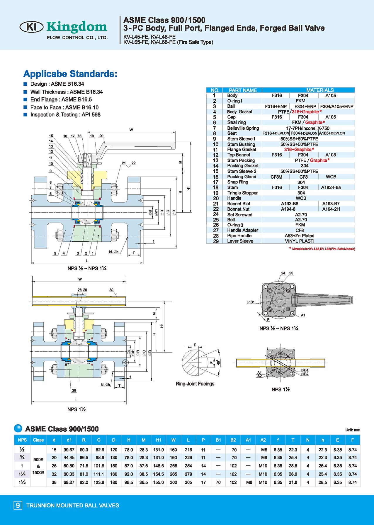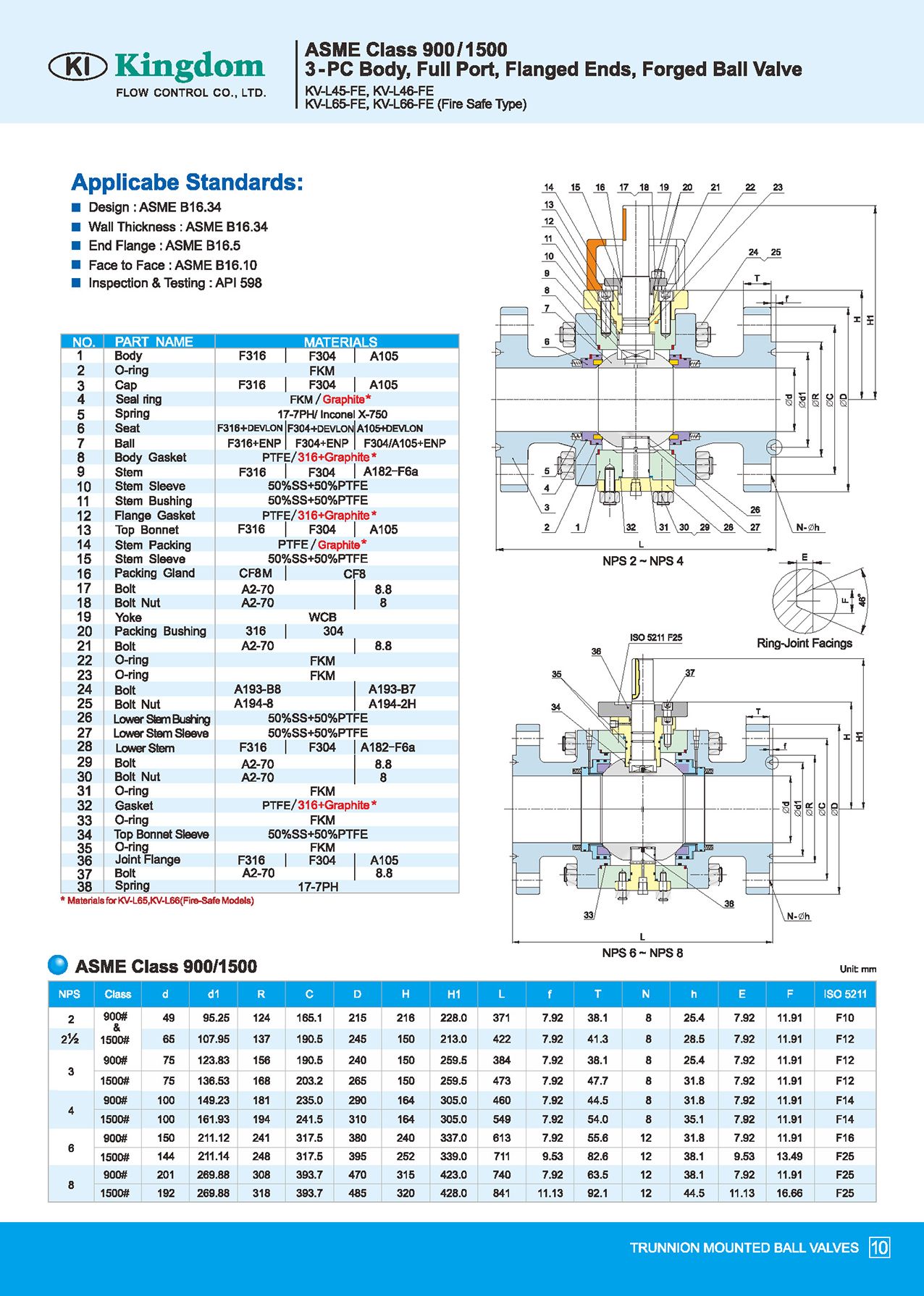 Trunnion Mounted Ball Valves ASME Class 900 , ASME Class 1500 - KI Kingdom