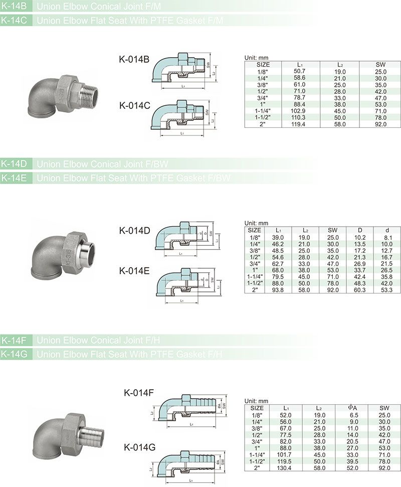 • K-014F Union Elbow Conical Joint F/H
