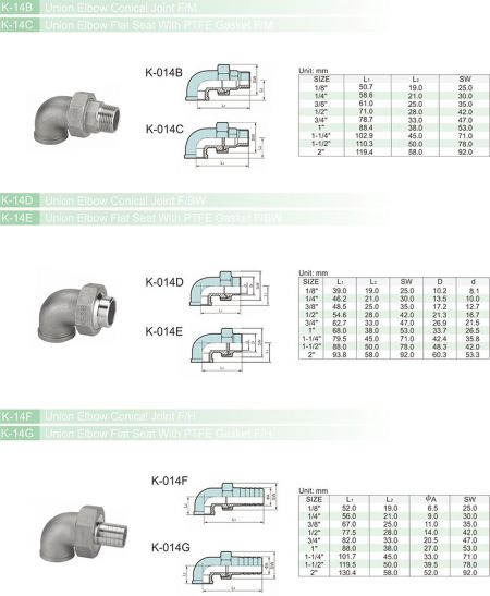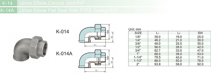 • K-014E Union Elbow Flat Seat With PTFE Gasket F/BW