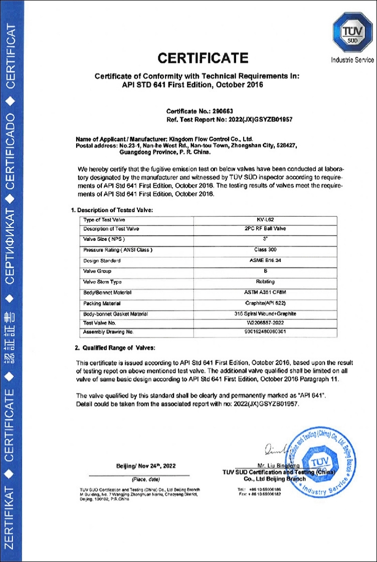 - API 641: API 641 standard requires valves to meet the stringent criteria of maximum leakage of 100 ppmv, while undergoing 610 cycles of the valve under extreme temperatures.