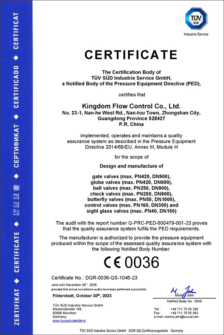 - PED: PED 2014/68/EU is a mandatory directive for pressure equipment uses in the European Union. KI is certified with category III module H, which is full quality assurance including the requirements for design, manufacture, assembly, testing and packaging.