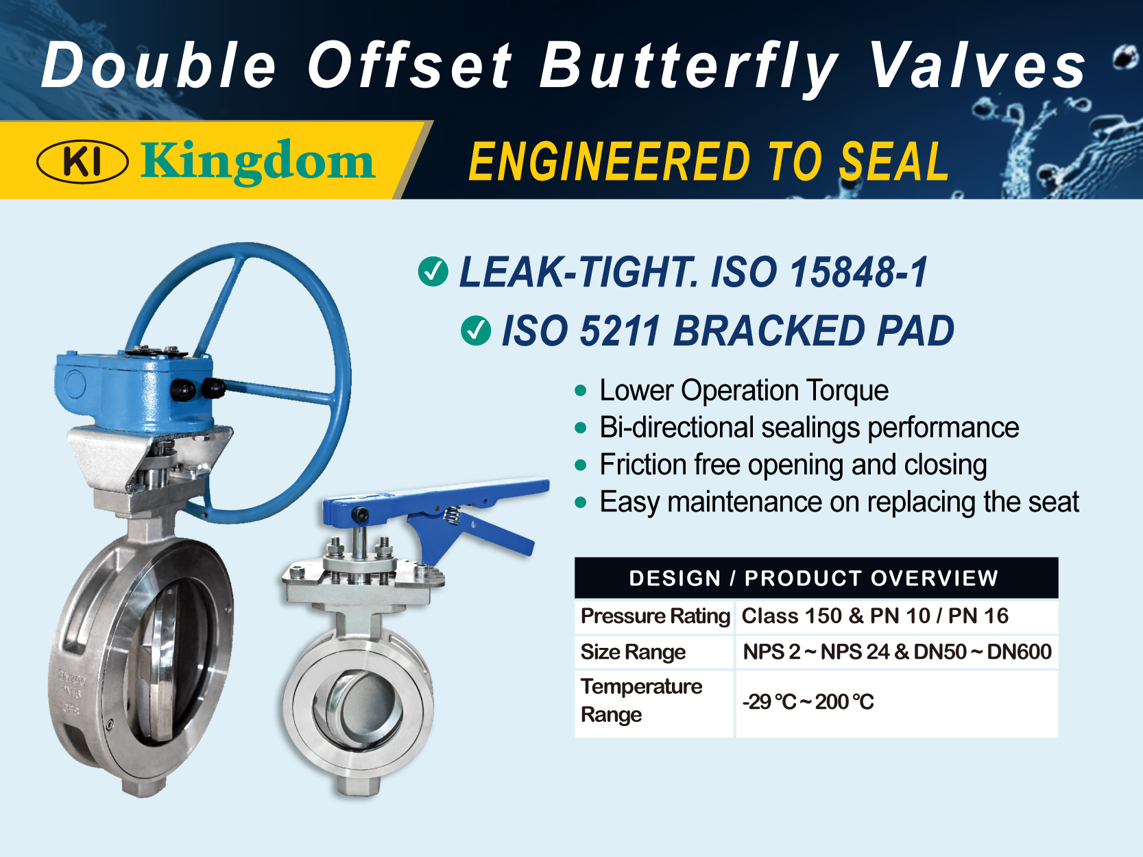 We're proud to announce that Kingdom's Double Offset Butterfly Valves have recently achieved ISO 15848-1 low leakage certification, demonstrating our commitment to environmental safety and operational reliability.