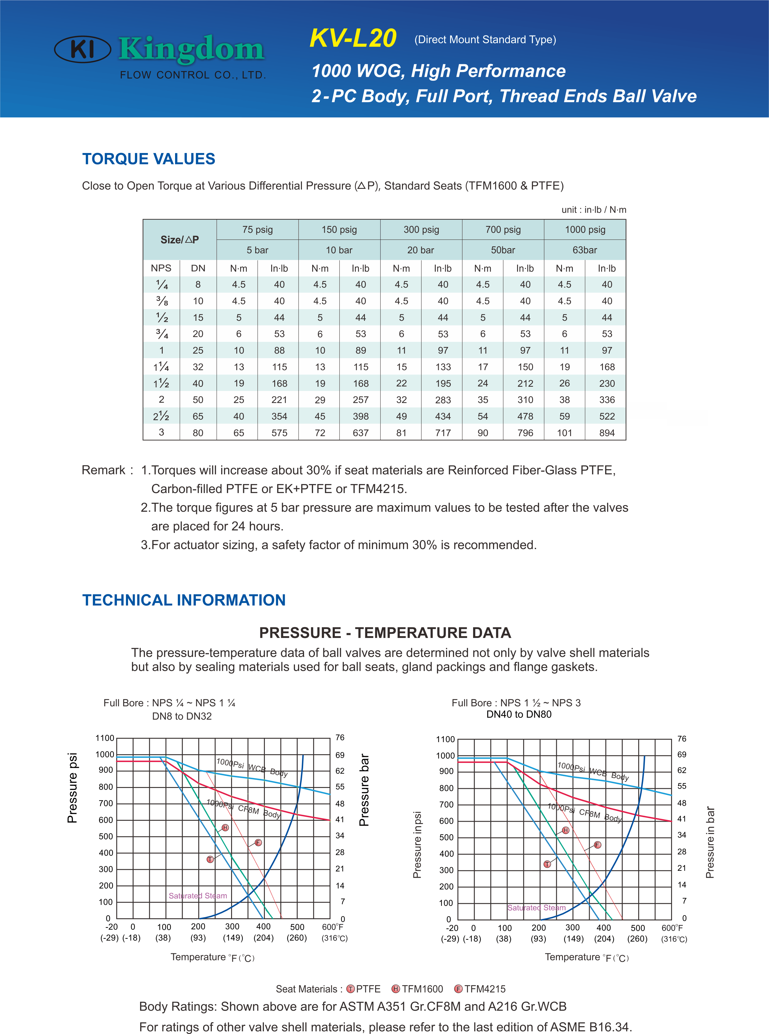 - Seats: TFM 1600 / PTFE / R-PTFE