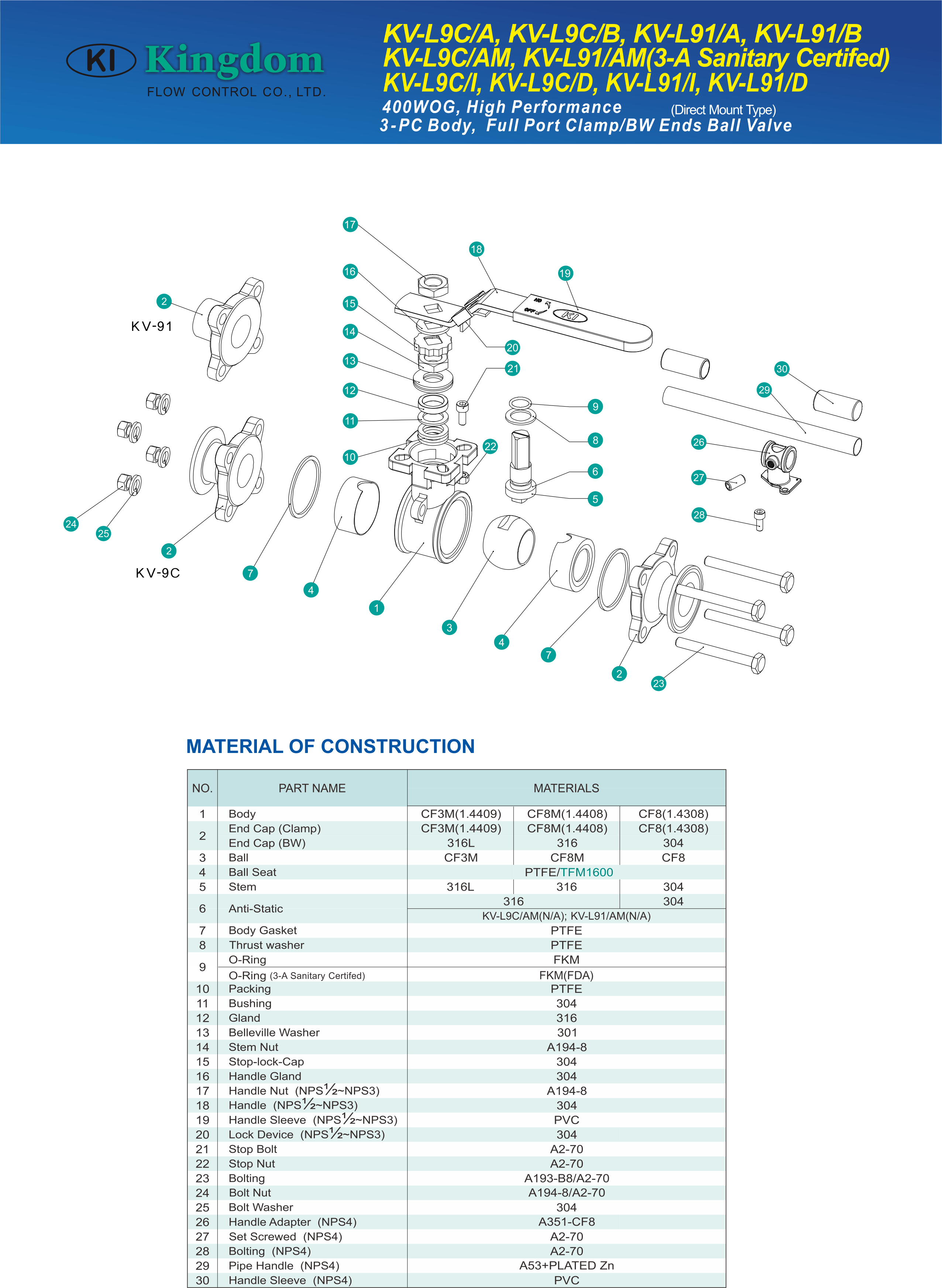 - ISO 2852 (L9C/I) ASME BPE, BS 4825 (L9C/B)