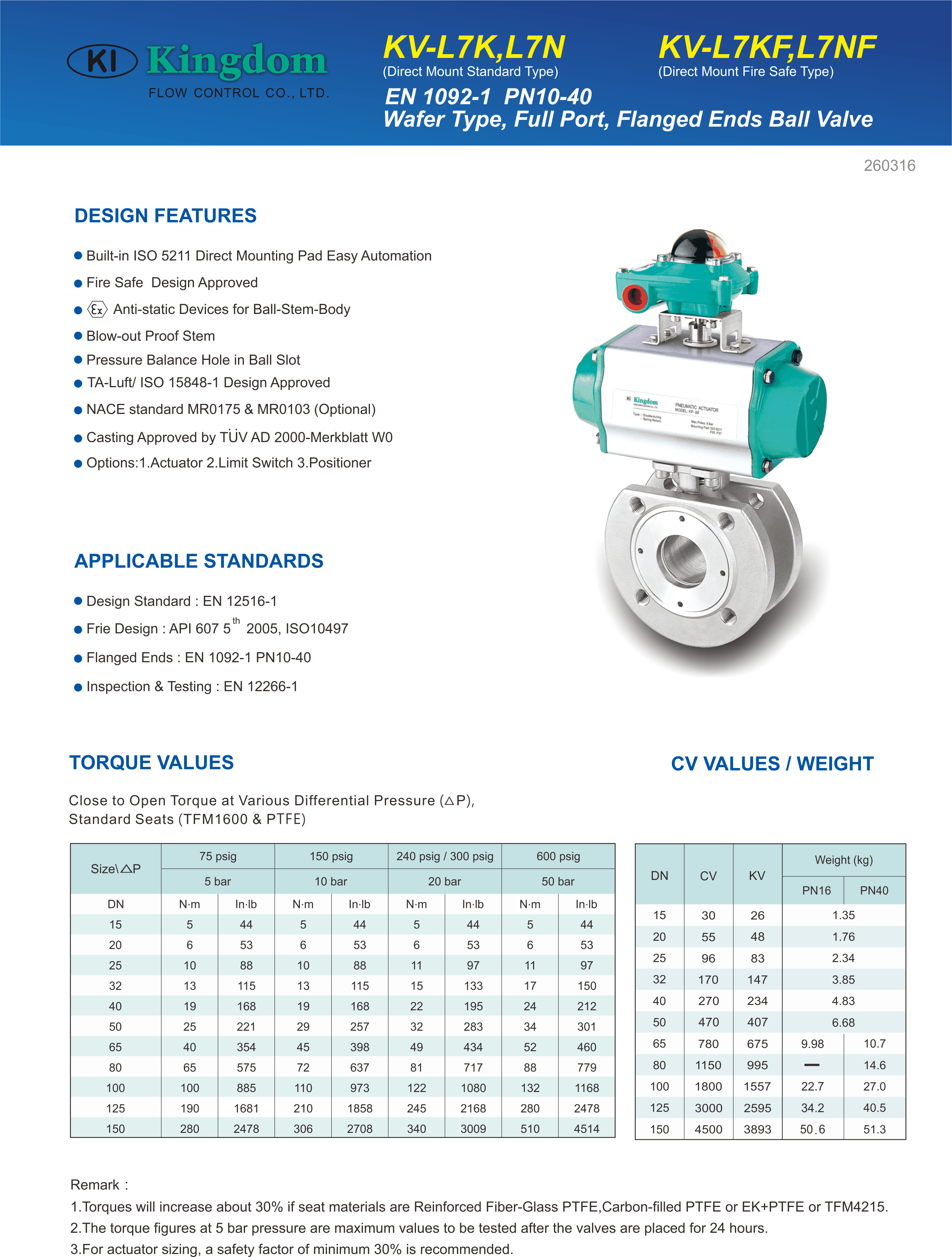 - PN16 (L7K / L7KF), PN40 (L7N / L7NF)